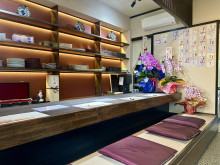 席数は、1階=9席、2階=12席。メニューは、「旬味おまかせ」(6,000円)、「赤坂おまかせ」(8,000円)、「特選赤坂おまかせ」(1万円、以上、ドリンク別)、「飲み放題付きコース」(7,000円)のコースをメインに提供。一品料理も用意する。