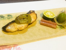 中央通りの焼き鳥店「葵屋」(唐人2)を経営する内田恵介さんが、赤坂純也さんを料理長に迎えて開いた同店。赤坂さんは2024年秋に「葵屋」に客として来店した時に店に雰囲気の良さを感じ、掲示されていた求人を見て、料理人として働き始めた。内田さんは、由布院温泉や黒川温泉、雲仙温泉などの旅館やホテルでの料理経験がある赤坂さんと料理の話を重ねていくうちに、赤坂さんが料理長を務める和食店を開く構想を練るようになった。そうした中、昨年夏、願正寺通りで当時、飲食店を経営していた店主から店の物件を引き継いでほしいという打診があり、同物件を生かして和食店を開くことを決めたという。
