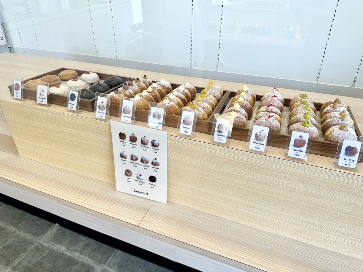 「Cream D Saga」店内に並ぶ11種類の生ドーナツ