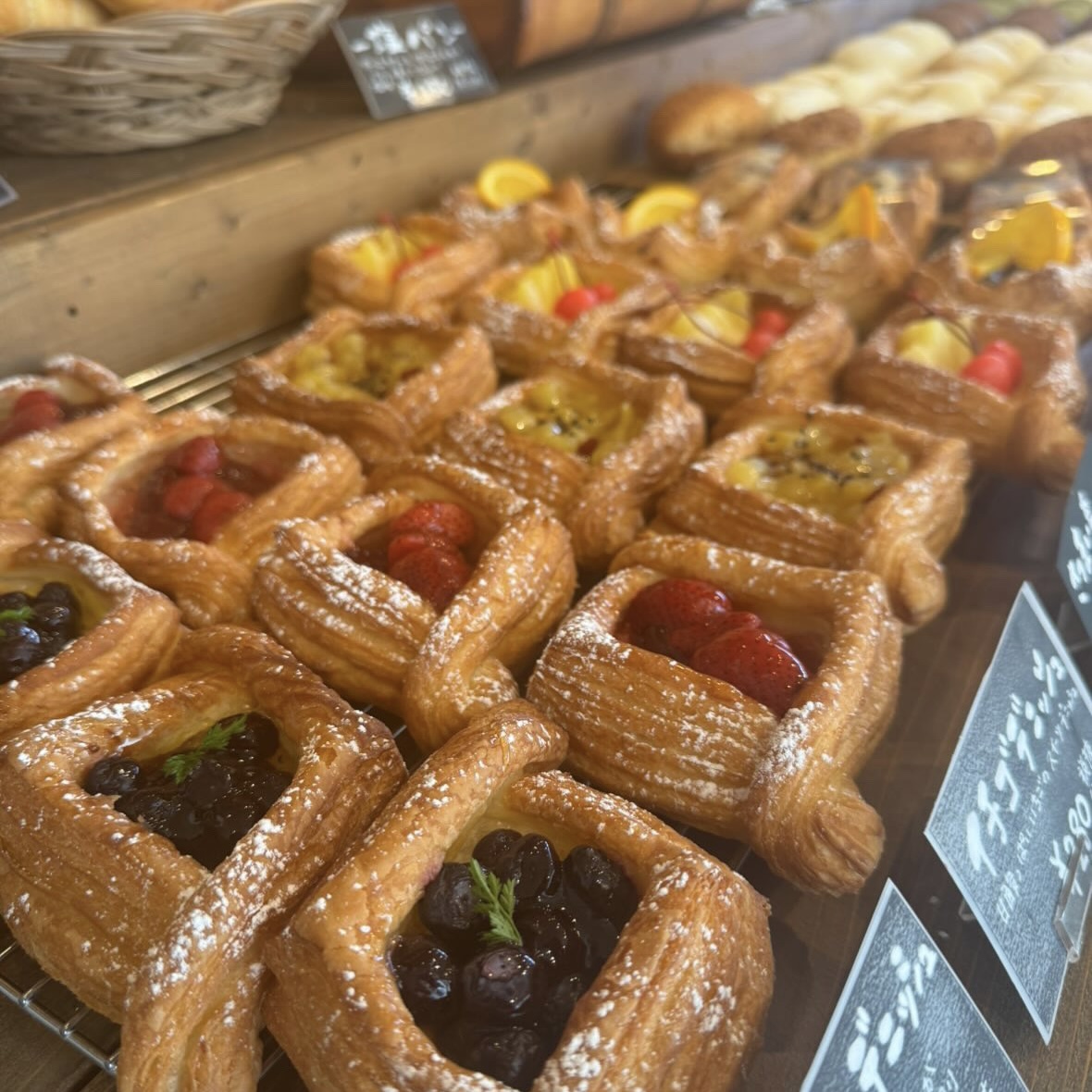 リニューアルした「こがわパン」店内に並ぶパン