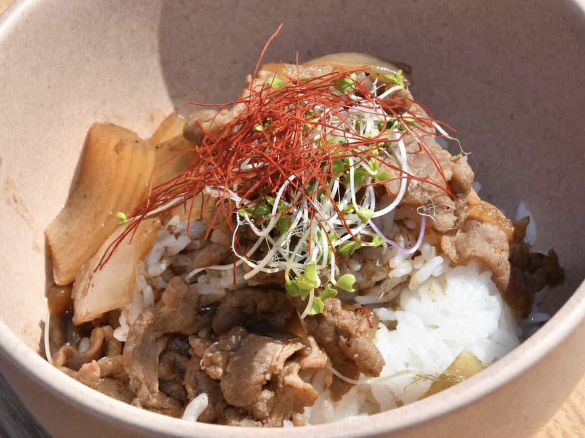 「しし肉kitchen りぼん」で提供する「麹みそだれしし肉丼」
