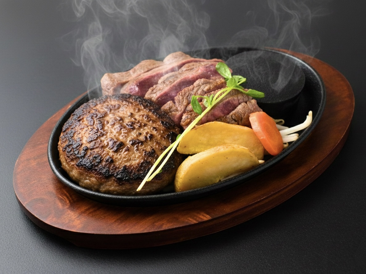 「ステーキハウスWINNERs」で提供する「熟成赤身ステーキ国産牛ハンバーグ」