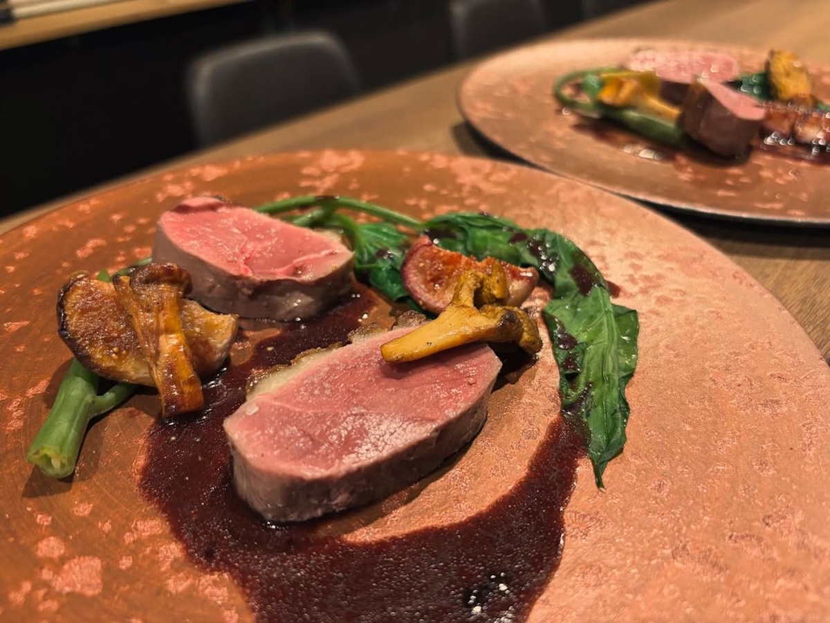「Petit Restaurant Cypres」で提供する「鴨胸肉のロティ キャラメリゼした無花果 ソースポワヴラード」