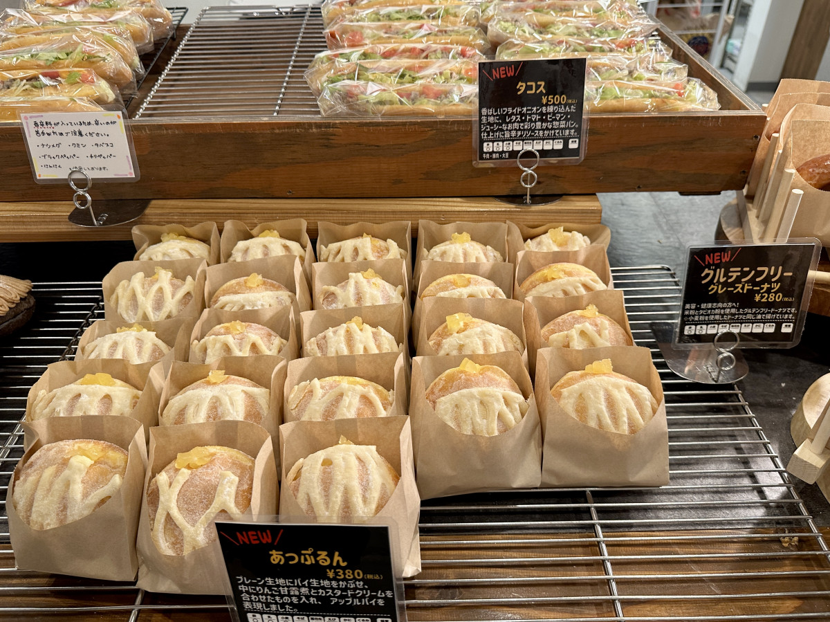 「Melty屋」の店内に並ぶ新商品「あっぷるん」「タコス」