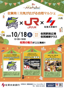 SAGA久光スプリングスとJR九州、佐賀共栄銀行の3社が主催する「佐賀発!元気が広がる合同マルシェ」が10月18日、佐賀駅前広場と佐賀維新テラスで開催される。