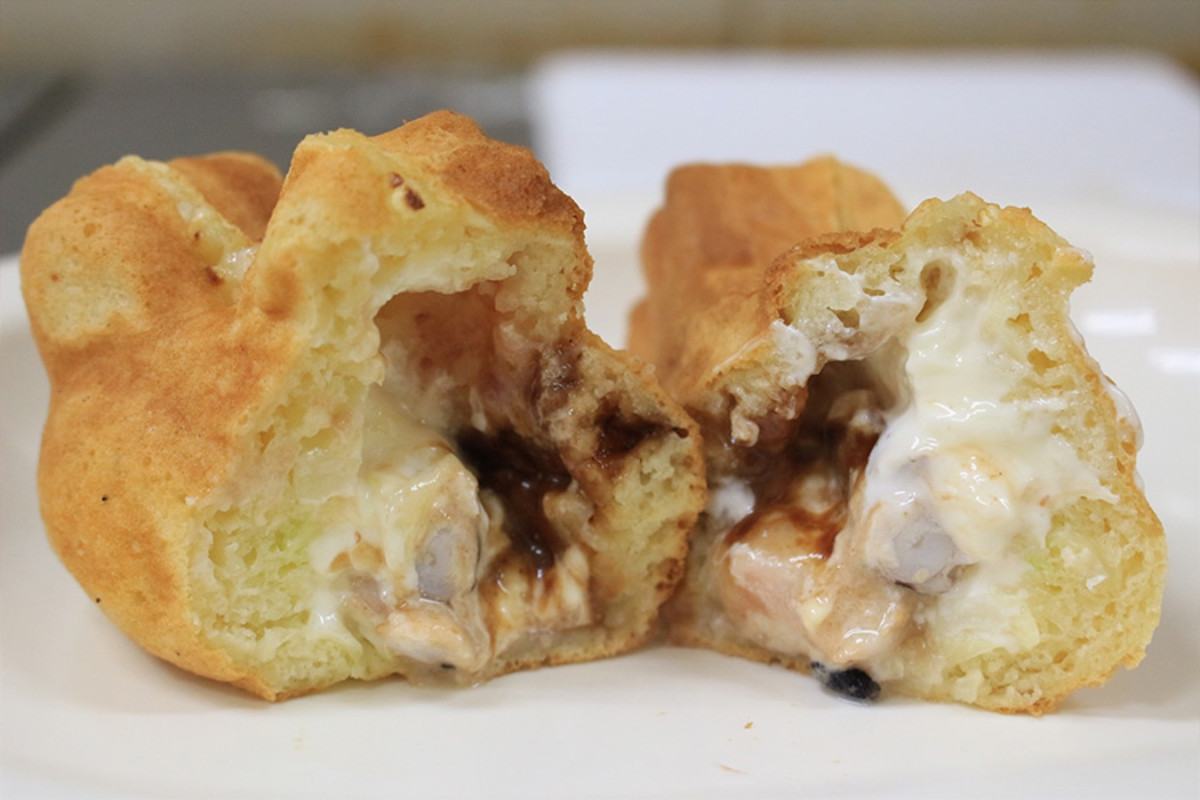 「むっちゃん万十」で販売する、たこ焼きが入った「ごろごろちゃん」