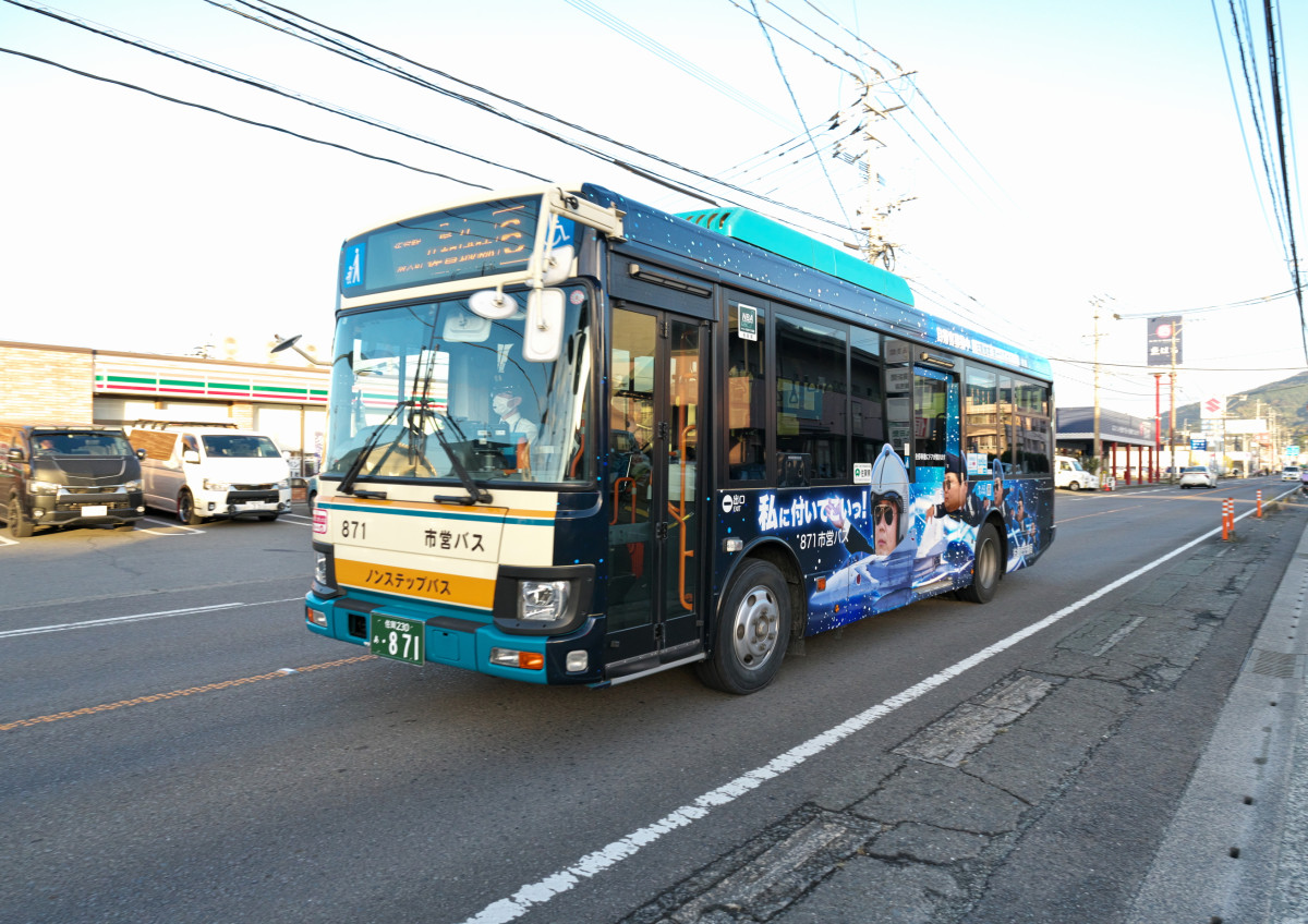 自衛隊佐賀地方協力本部の広報キャラクター「まーべりっく」を描いたラッピングバス