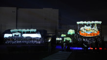 戸上電機製作所本館で上映される体験型プロジェクションマッピングの様子(リハーサル上映)