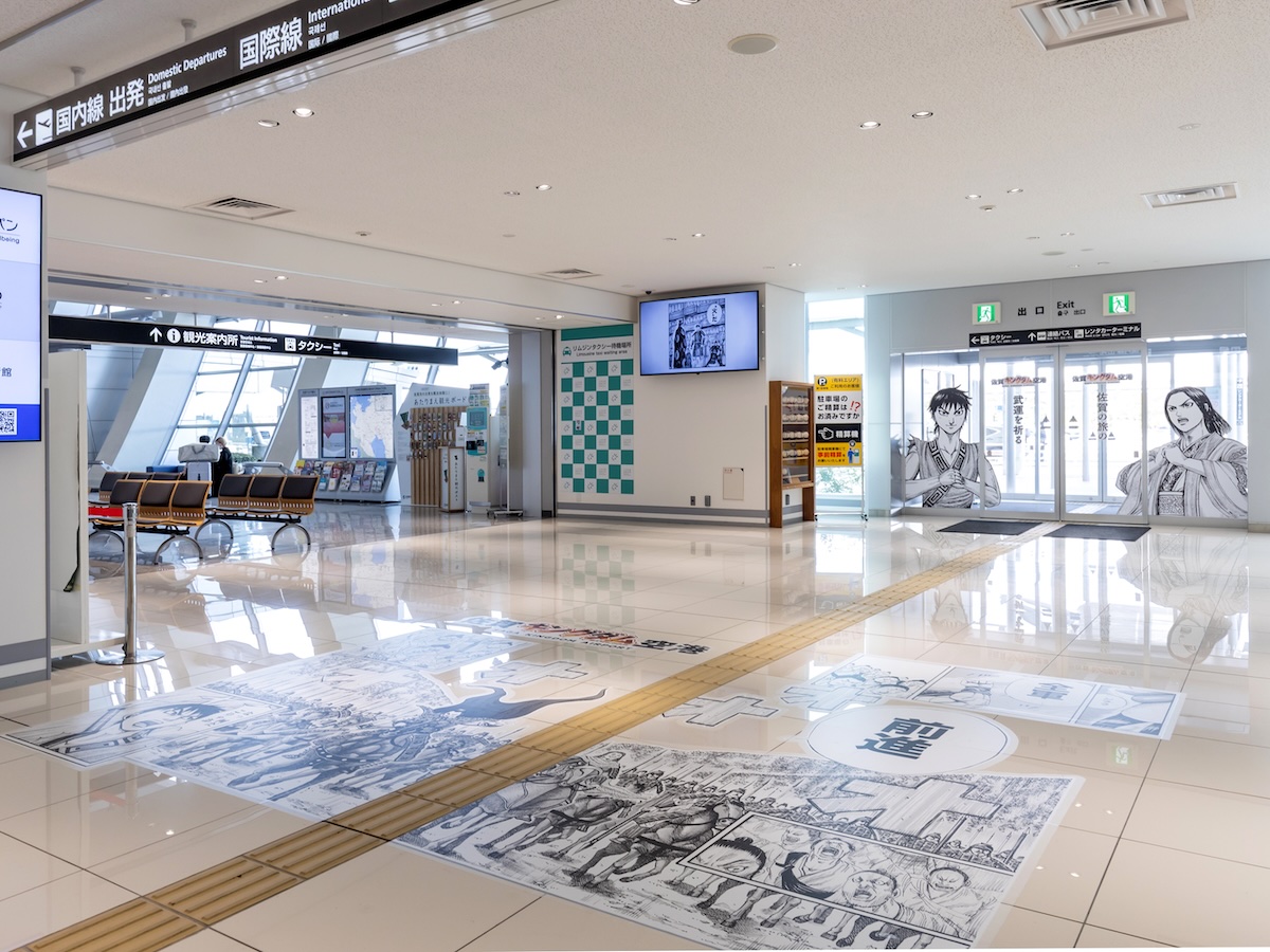 佐賀空港1階・国内線到着口付近に装飾された漫画「キングダム」