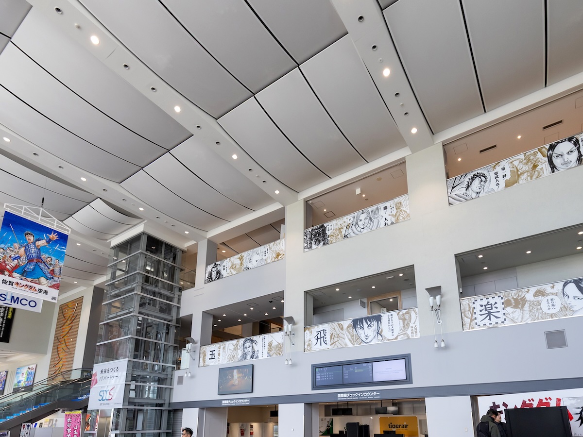 佐賀空港1階・国際線チェックインカウンター付近に装飾された漫画「キングダム」