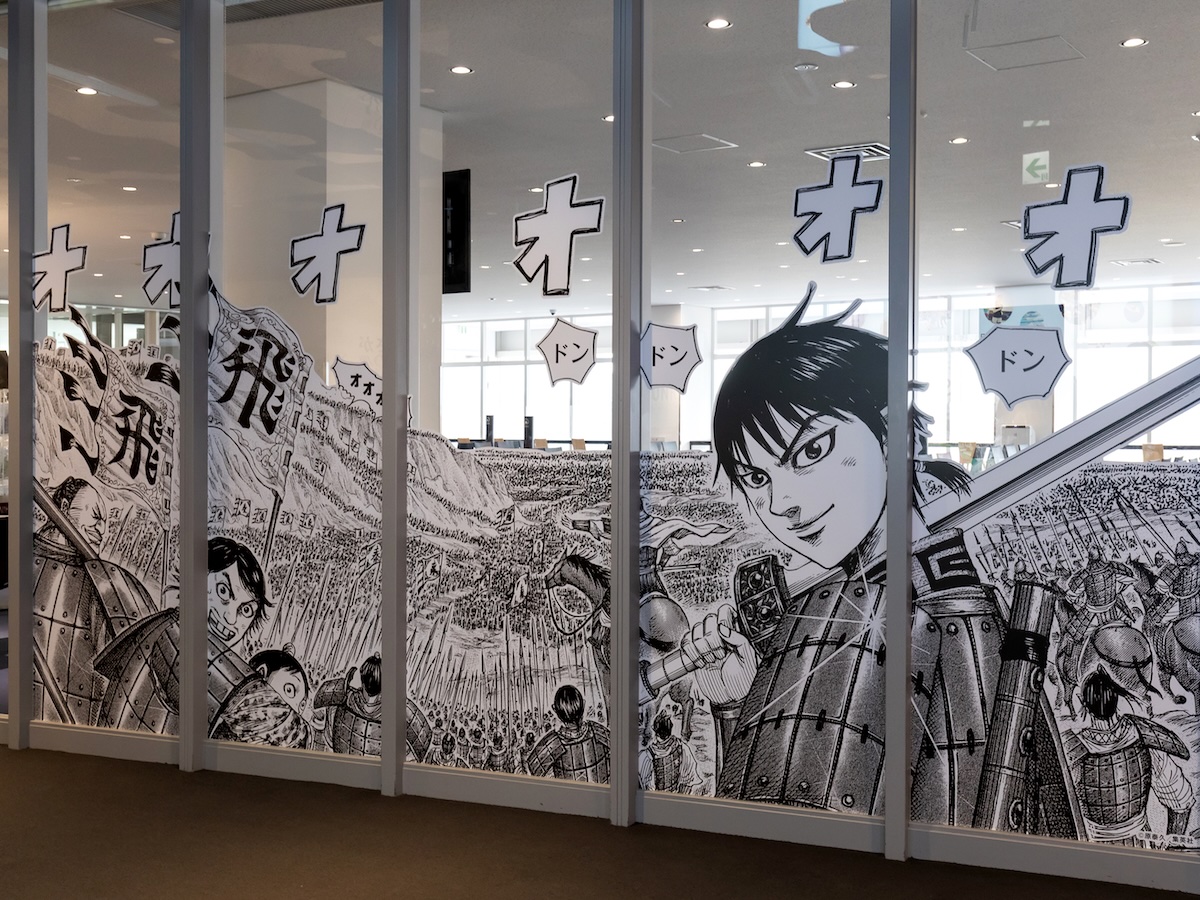 佐賀空港2階・国内線出発ロビー付近に装飾された漫画「キングダム」