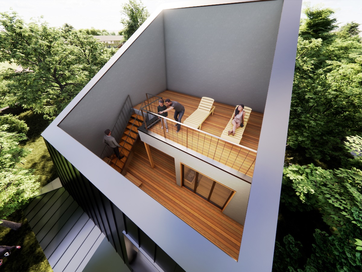 「スノーピーク吉野ヶ里キャンプフィールド&ヴィラ」の物見櫓をモチーフにしたコテージ「風ノ庵」外観イメージ