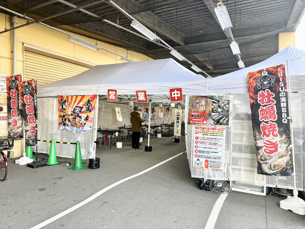 「モラージュ佐賀」(佐賀市巨勢町牛島)北館1階東入り口に2月6日、カキ焼き店が期間限定でオープンした。
