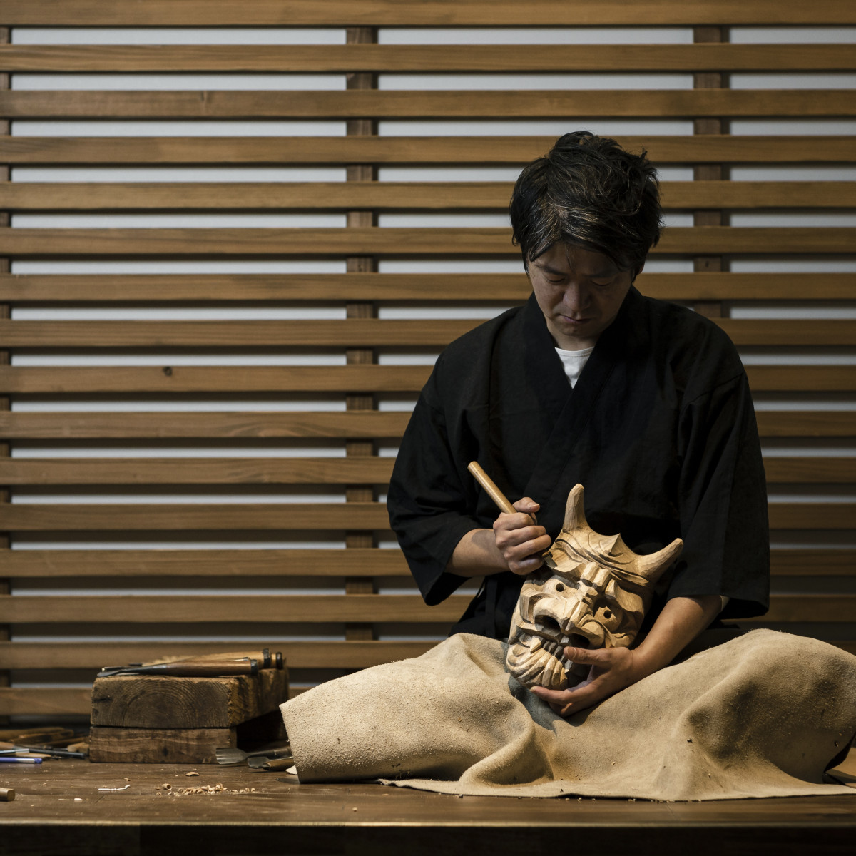 「佐賀つくるまちの開放日」に参加する「杉彫」(工房見学=木彫の工程や道具、仕上げの様子など、制作の現場の見学、ワークショップ=オリジナルキーホルダーづくり体験、オリジナル箸づくり体験、浮立面板はがきづくり体験)、展示販売=浮立面や木彫工芸品、木彫雑貨などの展示販売)