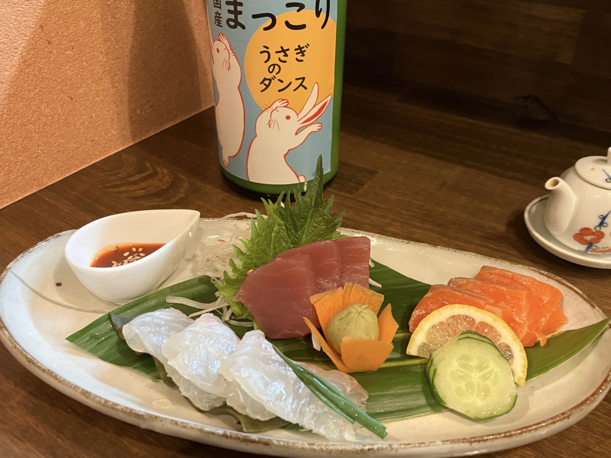 和韓創作料理店「青いYON」で提供する「刺身三種盛り合わせ」