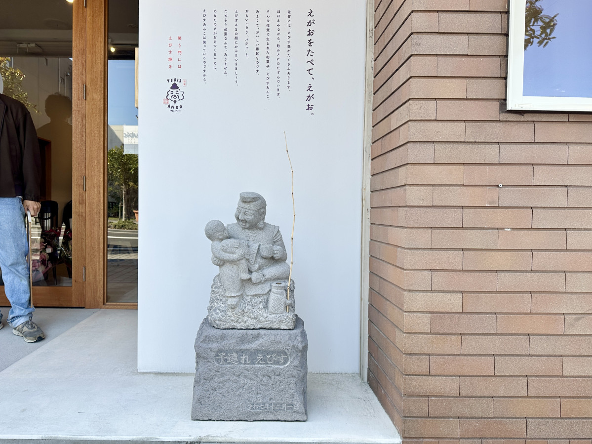 「えびすあんこ」店頭に置かれた恵比須像「子連れえびす」