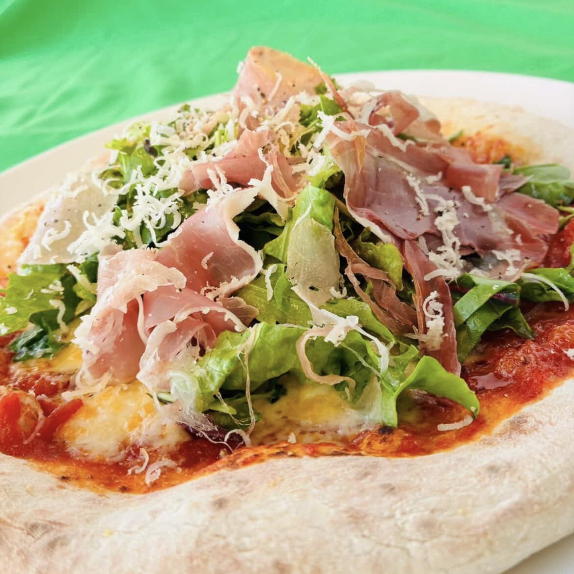 ダイニングバー「OZ」で提供する「生ハムのサラダピザ」