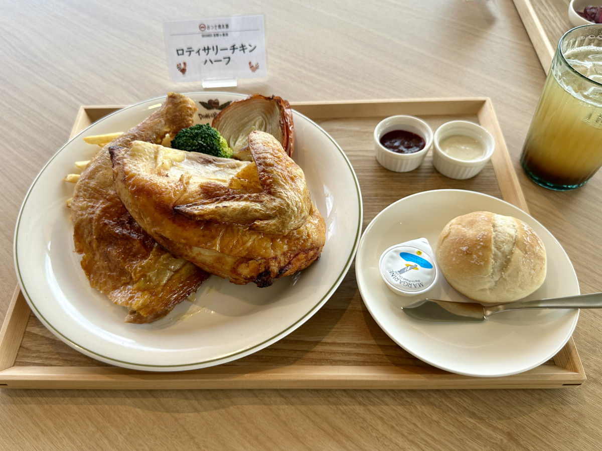 「みつせ鶏本舗GROUNDS 吉野ヶ里店」で提供する「みつせ鶏のロティサリーチキンハーフ」