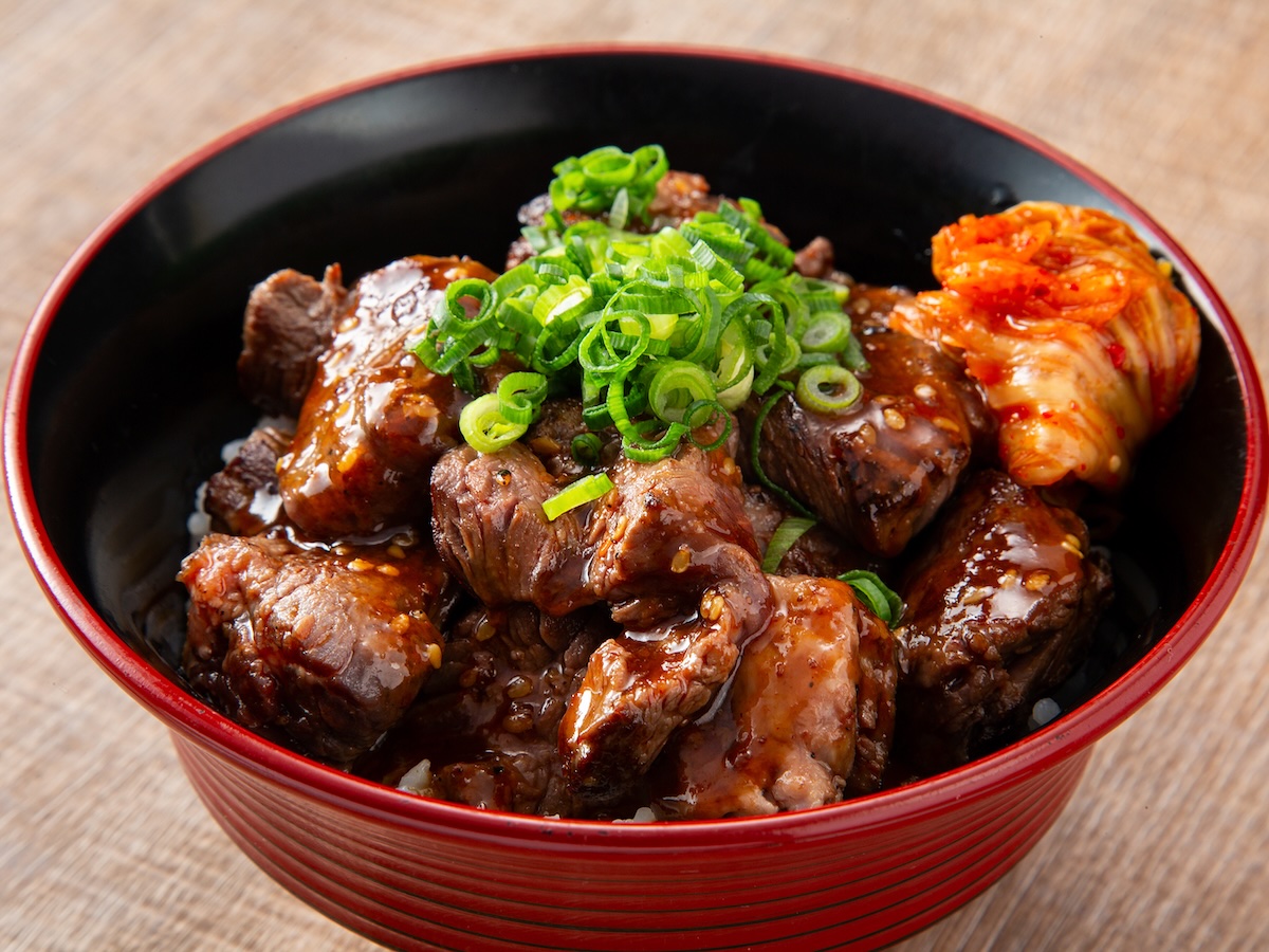 ステーキと肉丼店「肉のまるや 佐賀駅店」(佐賀市駅前中央1、TEL 0952-97-9898)が佐賀駅西側商業施設「サガハツ」にオープンして、4月5日で1カ月がたつ。