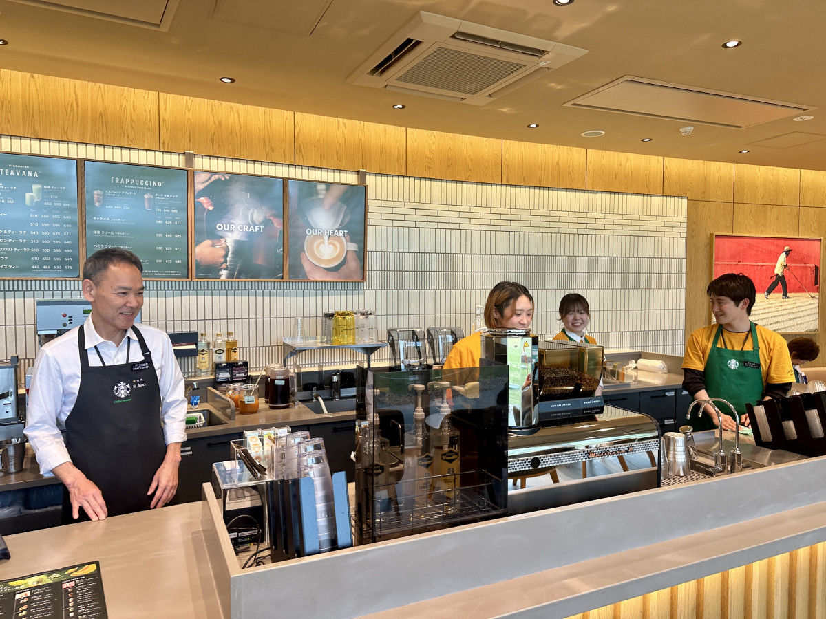 「スターバックスコーヒー 吉野ヶ里歴史公園店」店内で接客するスタッフ