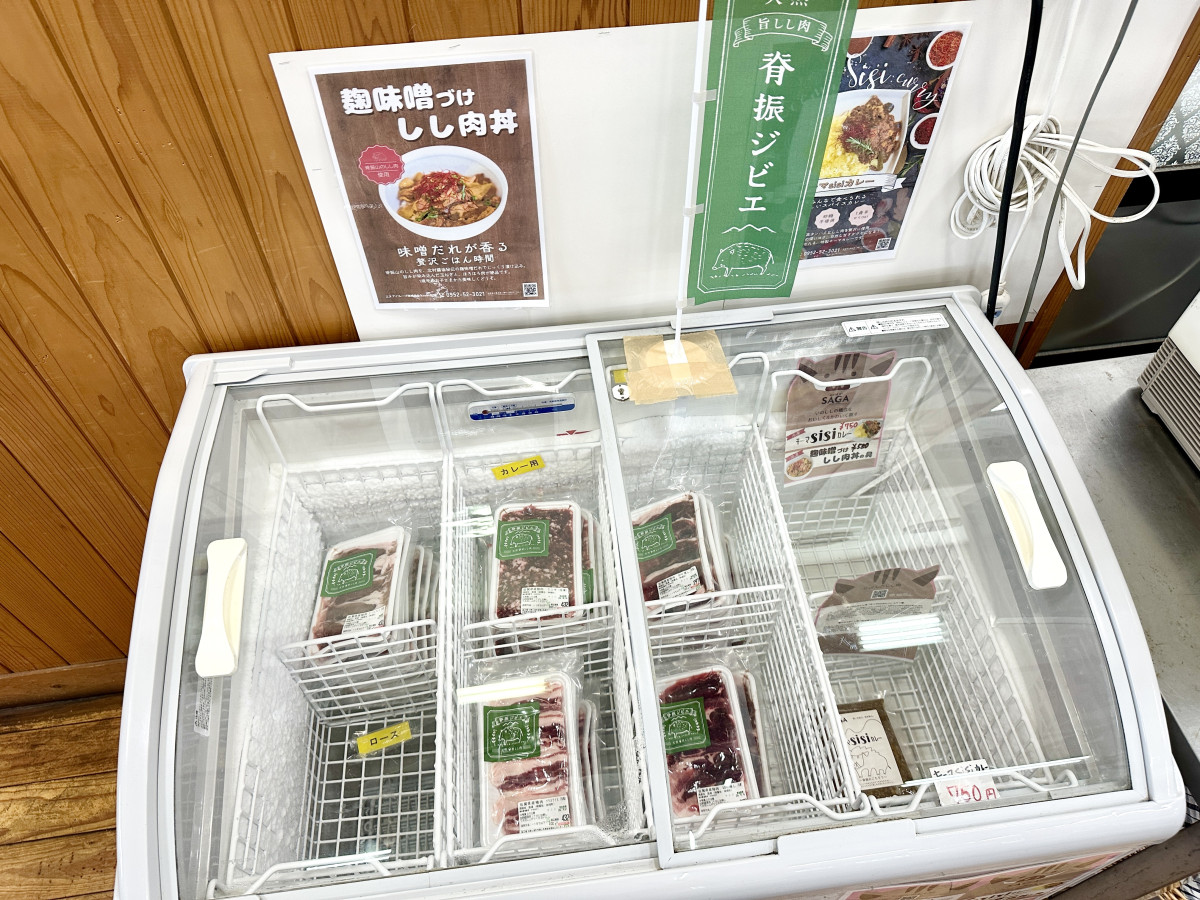 「しし肉kitchen りぼん」で販売する、冷凍加工したイノシシ肉など