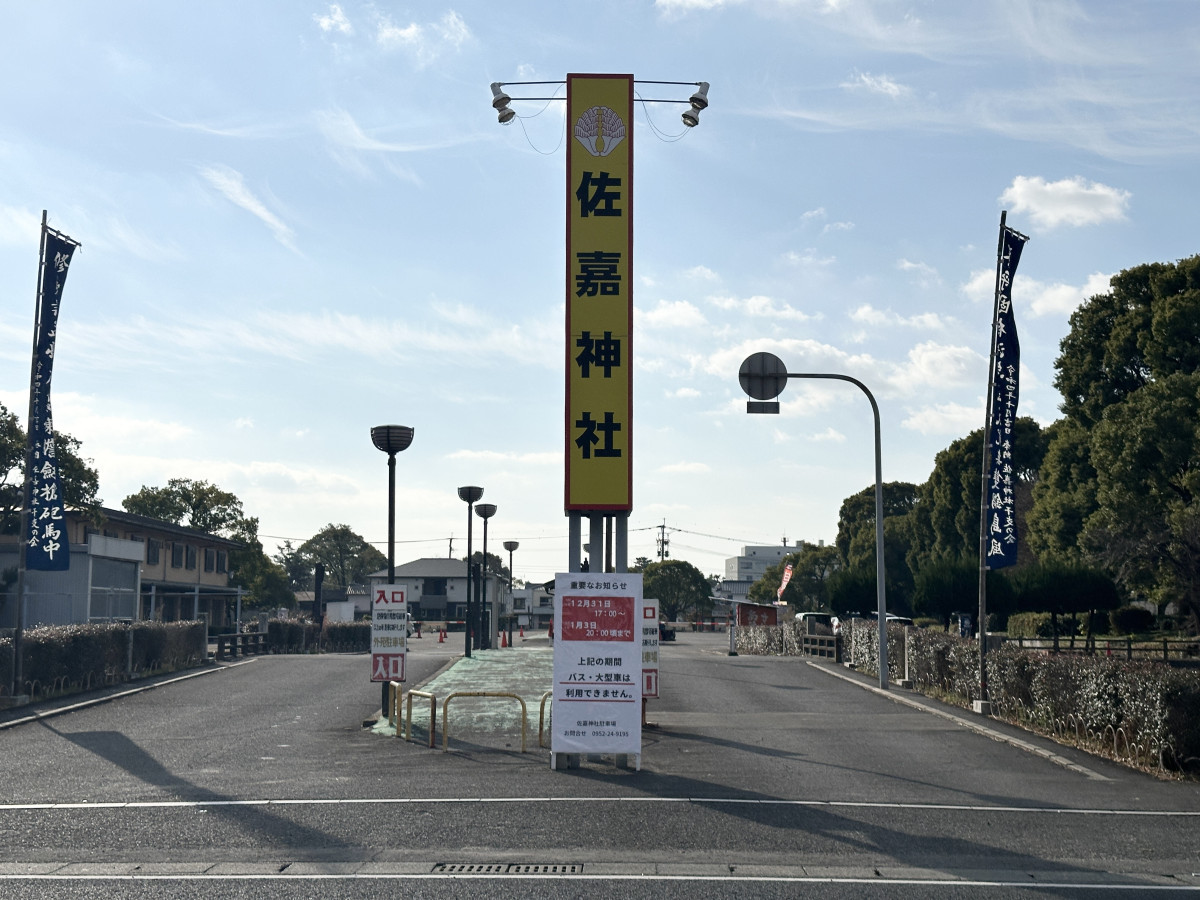 佐嘉神社初詣に伴う交通規制を今年度から変更し、規制期間中、佐嘉神社西側の「神苑(境内)駐車場」を閉鎖する。