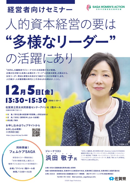 AERA元編集長・ジャーナリスト 浜田 敬子氏登壇!佐賀県主催 「人的資本経営の要は“多様なリーダー”の活躍にあり」 12/5 開催