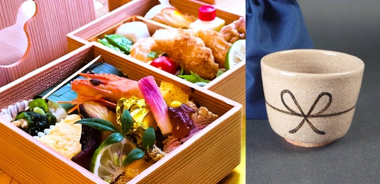 玄洋特製「太閤弁当」を1日限定50食ご用意。お持ち帰りができる唐津焼の猪口で乾杯!