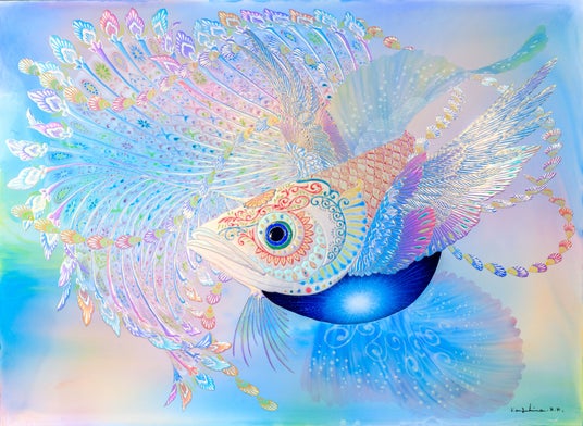 道家の思想家・荘子が記した書『荘子』の冒頭には、「鯤(こん)」という伝説の魚が登場します。北の果て「北冥(ほくめい)」の海に潜む鯤は、やがて何千里もの空を翔ける大いなる鳥「鵬(ほう)」へと姿を変えます。この寓話は、すべての存在が本来、変化と飛躍する力を内に宿していることを伝えています。「小さな価値や基準に囚われることなく、その奥底に秘めた生命の根源的な力に従うとき、真の自由と無限の可能性が拓かれる」という荘子の思想が表されています。