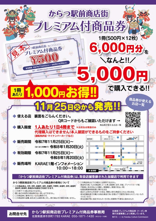 「からつ駅前商店街プレミアム付商品券」を11月25日(火)より発売開始いたします。