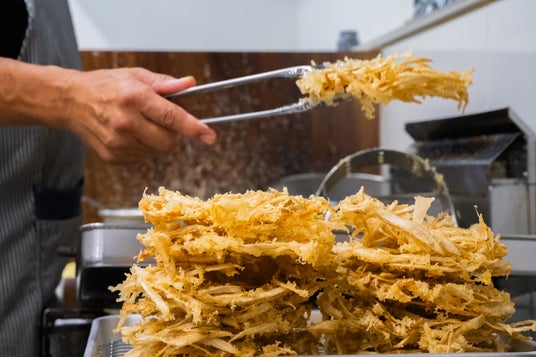 創業当時から変わらず支持されてきた、かま蔵ならではの味。軽くてサクサク。だしを吸って もしつこくならない、こだわりの仕上がり。細く切ったごぼうをひとつひとつ丸く揚げた、かま蔵うどんの看板トッピングです。