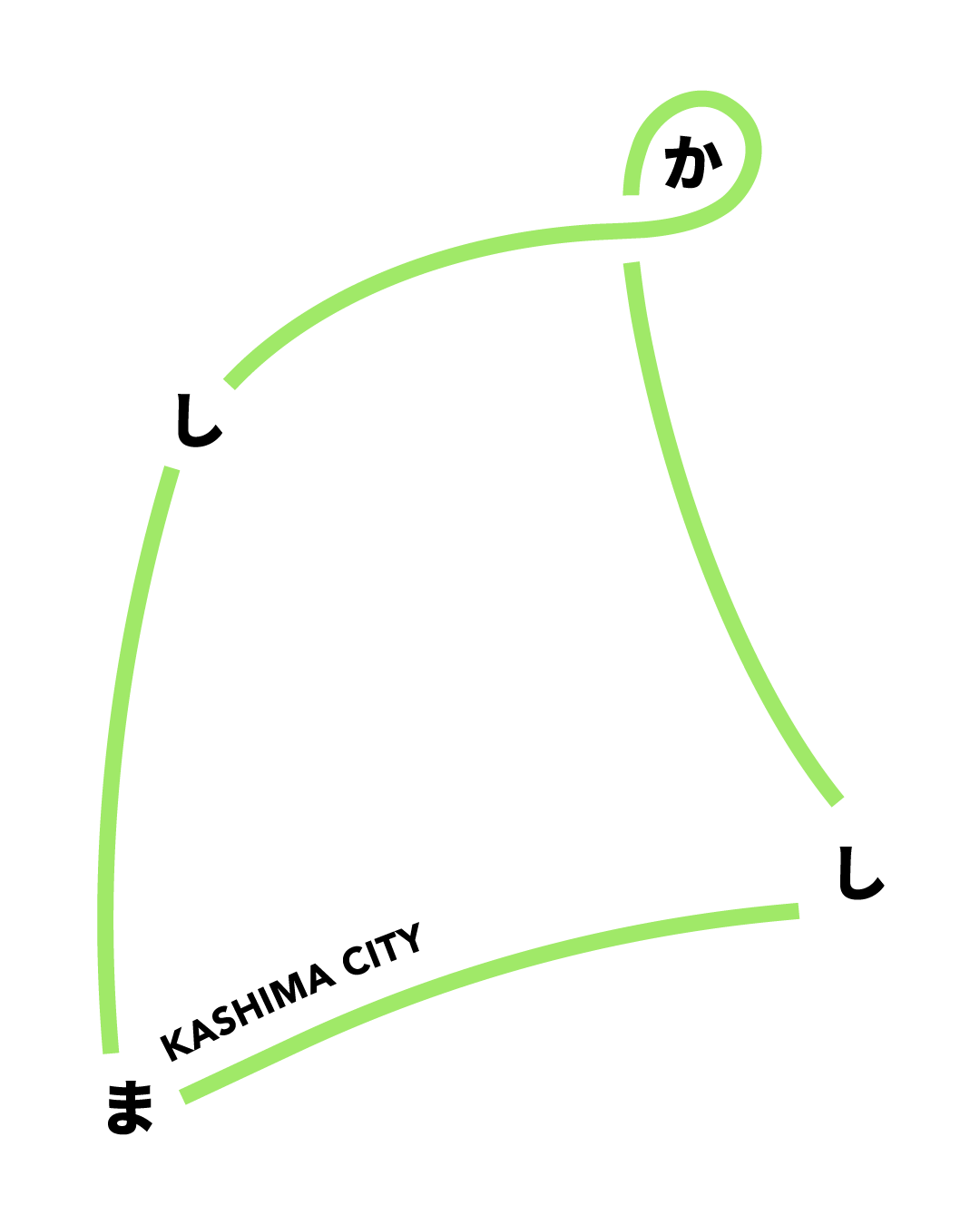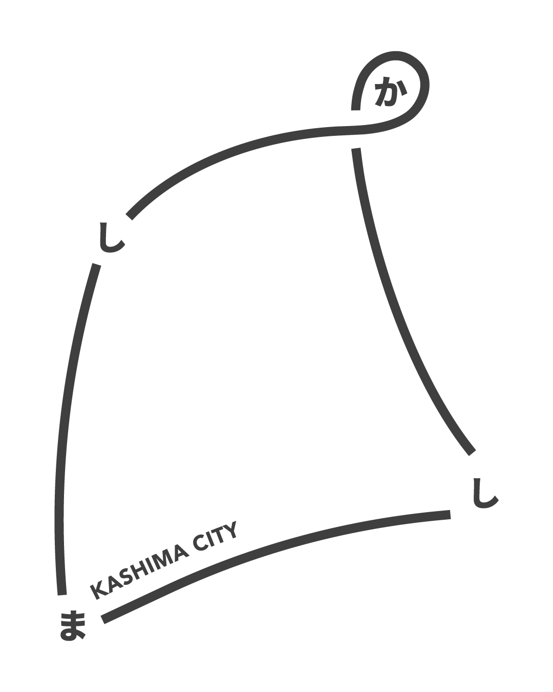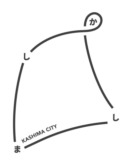 鹿島市の地形をモチーフに、「か・し・ま・し」の文字を4つの頂点に配置し、それぞれを線でつなぎ、一巡することで『かしましか』というキャッチコピーが浮かび上がる構造となっています。