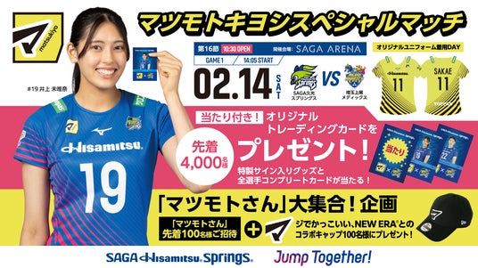 2025-26 大同生命SV.LEAGUE WOMEN 第16節(2/14/土/GAME1)にてオリジナルユニフォームの着用が決定いたしました!更に先着4,000名様にオリジナルトレーディングカードをプレゼント!そして、「マツモトさん」大集合!企画として、マツモトさんを先着100名ご招待!& NEW ERAとのコラボキャップをプレゼント!
