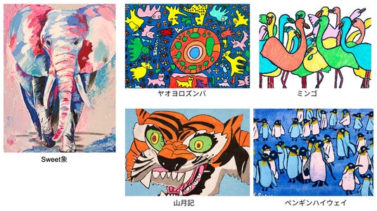 グッズデザインの原画を含む約15点の絵画作品を展示。