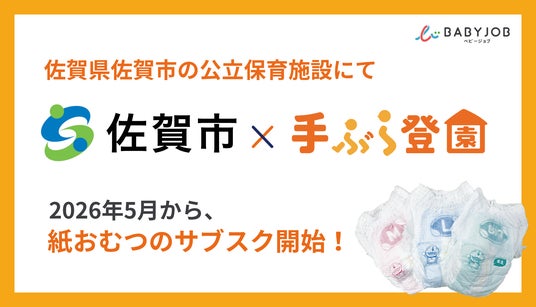 BABY JOB株式会社(本社:大阪府大阪市、代表取締役 上野公嗣)は、2026年5月より佐賀県佐賀市が運営するすべての公立保育施設(4園)において、保育施設向けの紙おむつとおしりふきのサブスク「手ぶら登園」が開始されます。